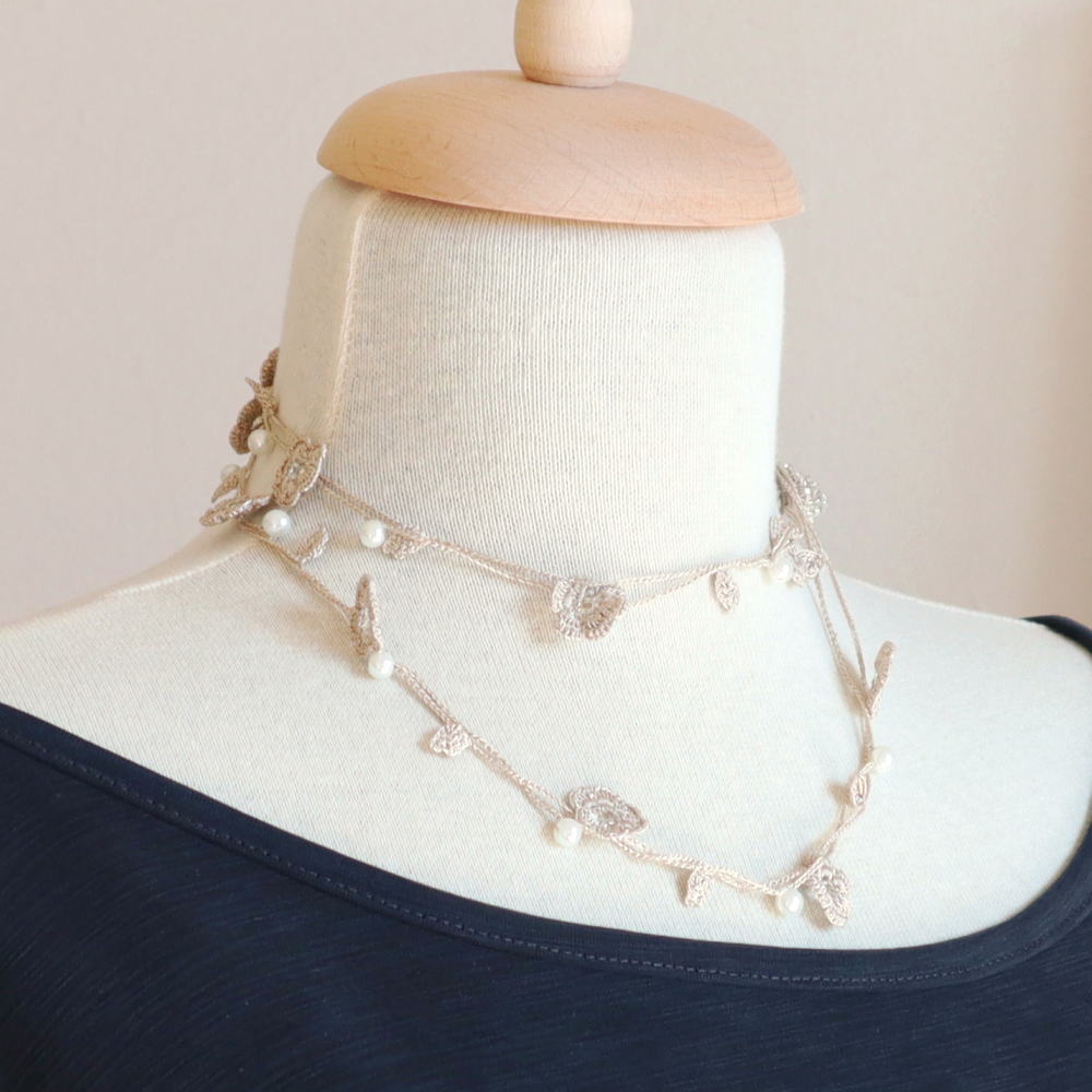 パールをプラスして、フォーマルにも使いたいラリエットにしました。