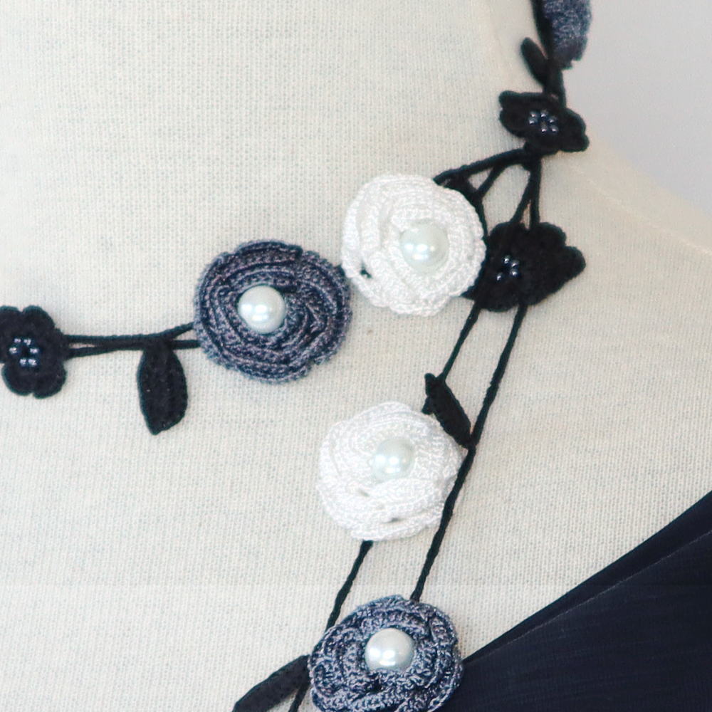 ROSE PEARL ラリエット「ローズ・パール」ホワイト&グレー