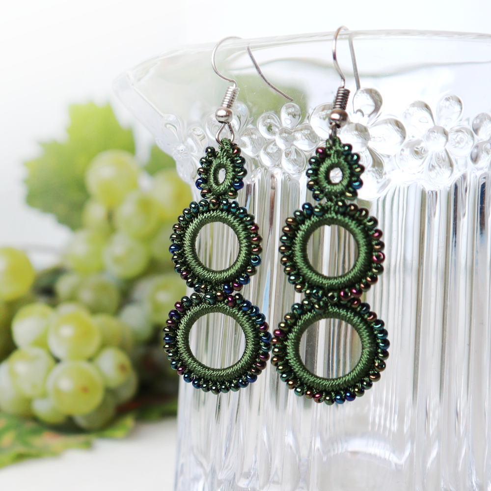 コーデに取り入れやすい、シックなカラーの糸とビーズの組み合わせです。