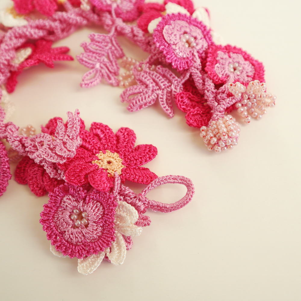 鮮やかピンクの「ビジュー」ブレスレットできました。
