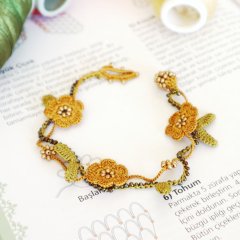 ブレスレットやラリエットでご紹介している小花のモチーフをたっぷり飾りました。