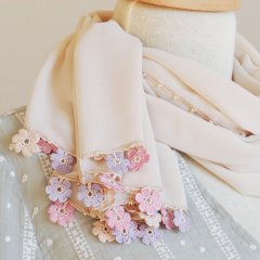 生成り(エクリュ)、淡いピンクと優しいベージュの3色の組み合わせ。