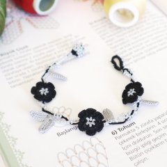 素材:ポリエステル糸、ビーズ、パールビーズ