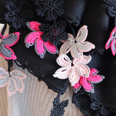 大判のストールを華やかに盛り上げてくれるモチーフを選んで、