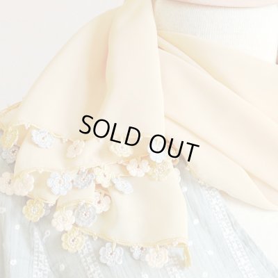 小花のモチーフ「マリー」をたっぷり飾ったシフォンベースのストールです。