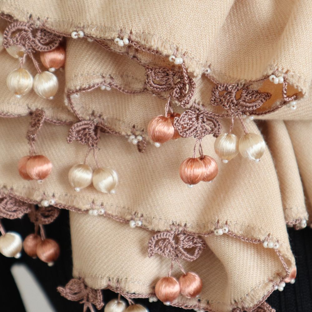 優しいオレンジベージュ・・・ミルクティ色のパシュミナ生地に、