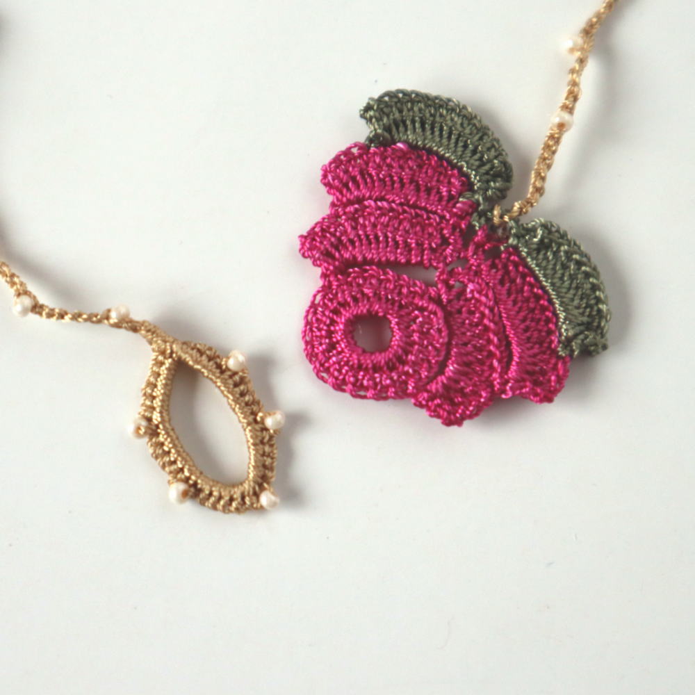 葉と茎(紐)の部分を同色で編むことで、